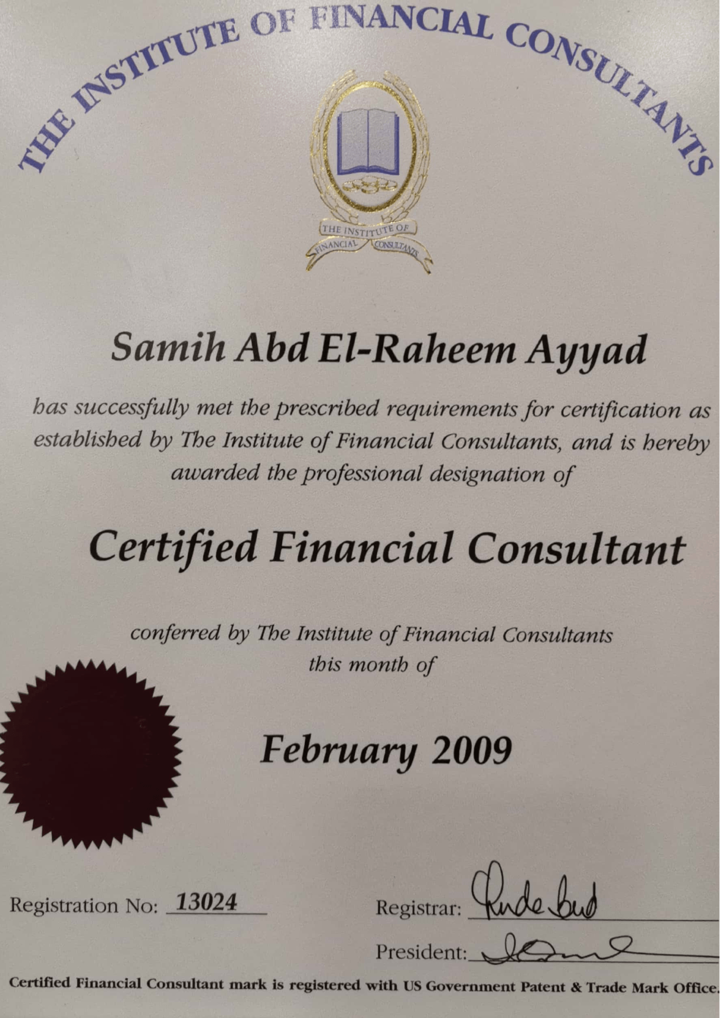 مستشار مالي معتمد من الواليات المتحدة الأمريكية.