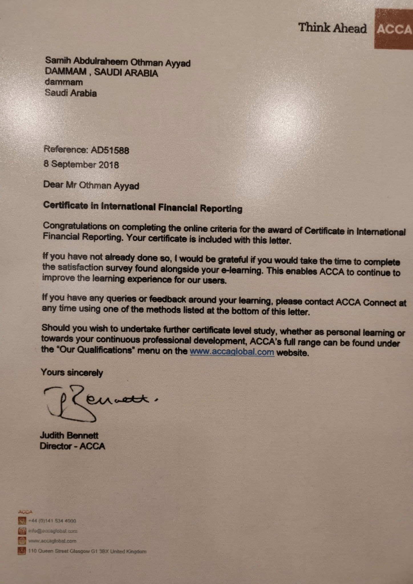 شهادة التقارير المالية الدولية المتحدة الأمريكية.