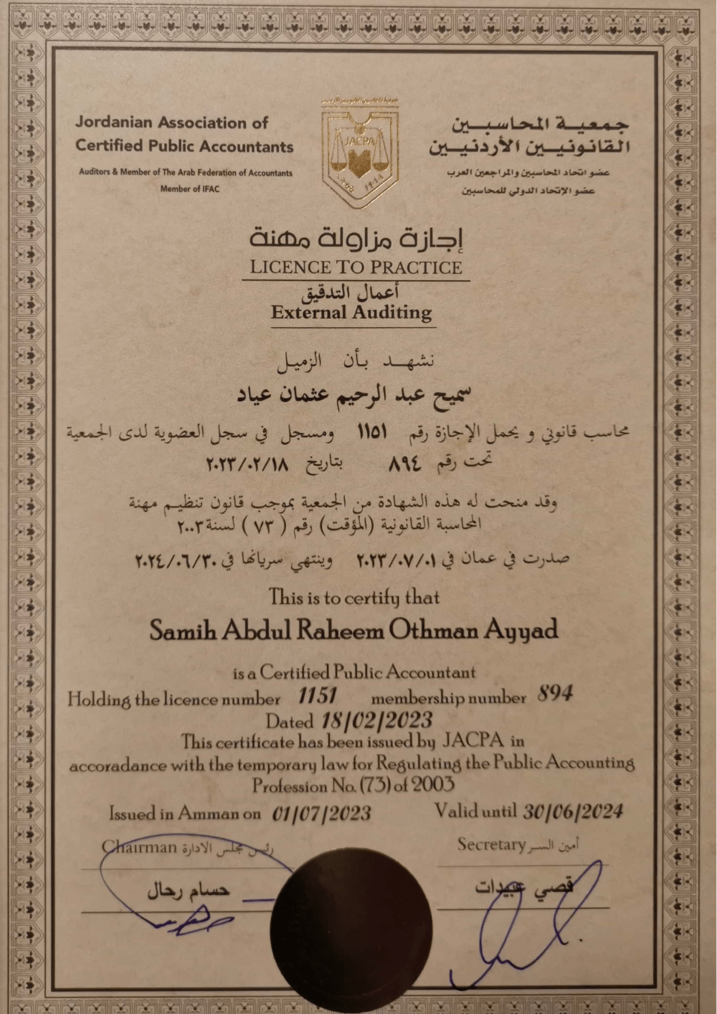 عيّاد للتدقيق والاستشارات تأسست في أبريل من عام 2023 باجازة مزاولة المهنة رقم (1151) في المملكة الأردنية الهاشمية – عمّان لتقديم العديد من الخدمات المالية والمحاسبية والادارية بوضع خبراتنا العلمية و العملية التي تتزيد عن عشرين عاماً بين يدي عملائنا.